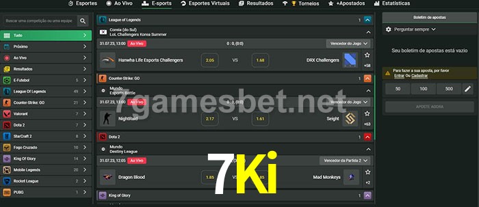 O 7Ki oferece uma grande seleção de opções de apostas em e-sports com probabilidades competitivas